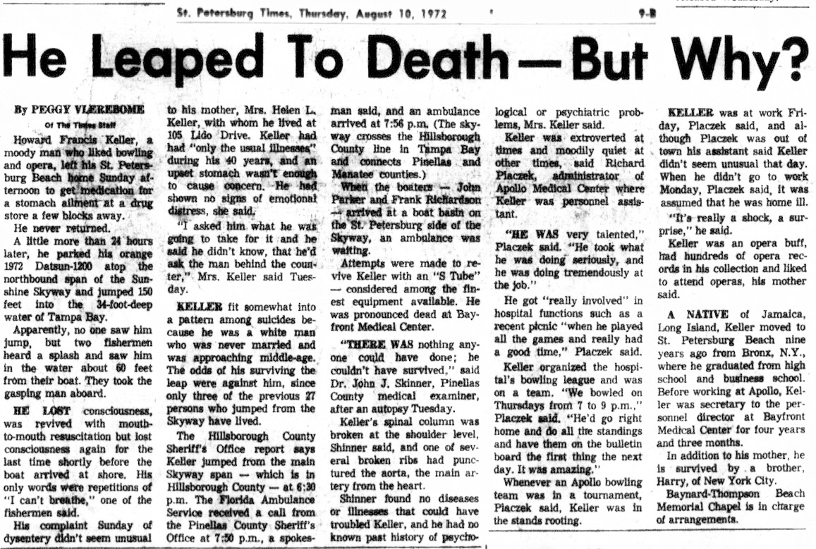 08.07.72: jumper, died Howard Francis Keller, 40 |