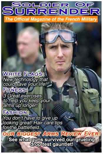 "I don't know why people are surprised that France won't help us get Saddam out of Iraq. After all, France wouldn't help us get the Germans out of France!" -Jay Leno How many Frenchmen does it take to change a light bulb? One. He holds the bulb and all of Europe revolves around him. Next time there's a war in Europe, the loser has to keep France. "I just love the French. They taste like chicken!" - Hannibal Lecter An old saying: Raise your right hand if you like the French.... Raise both hands if you are French. "My favorite bumper sticker in Washington D.C. right now is the one that says 'First Iraq, then France'." -Tom Brokaw "France said this week they need more evidence to convince them Saddam is a threat. Yeah, last time France asked for more evidence, it came rolling thru Paris with a German Flag on it." -Dave Letterman Only thing worse than a Frenchman is a Frenchman who lives in Canada. -Ted Nugent The only way the French are going in with us is if we tell them we found truffles in Iraq. War without France would be like...uh ...World War II What do you call 100,000 Frenchmen with their hands up? The Army Q. How do you stop a French tank? A. Shoot the guy pushing. Q. how many Frenchman does it take to defend Paris? A. We don't know, it's never been tried. The best French bashing line heard over the last week is: "We can count on the French to be there when they need us." Why are all the highways in France lined with trees? So the Germans can march in the shade! ![]() |