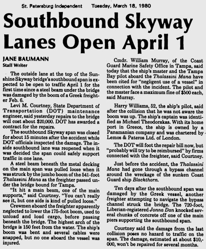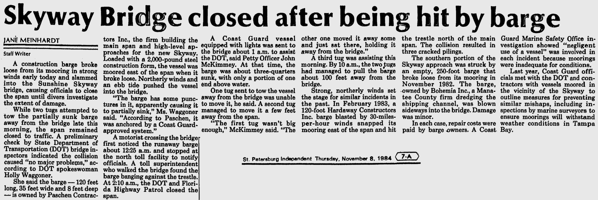 | 05.09.80: ship collision collapses the skyway. 35 die. disaster website |