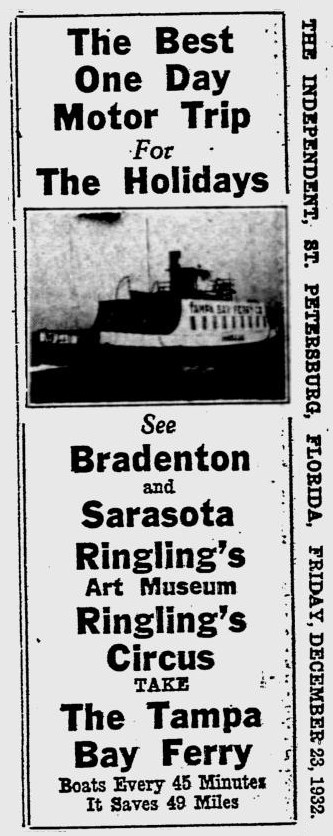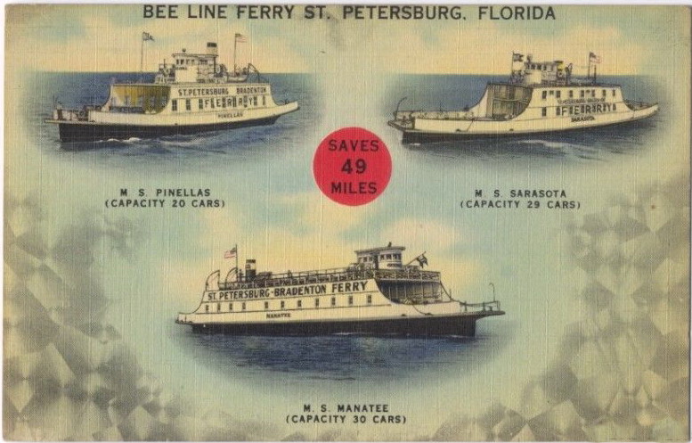 the bee line ferrypre-skyway tampa bay pinellas/manatee crossing.1926 - 1954 updated: 08.06.14 |