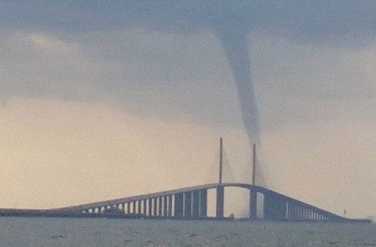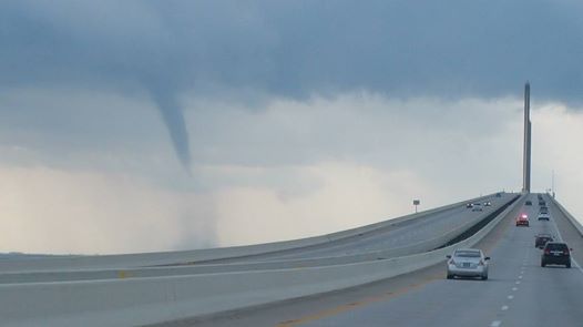 10.11.15, tampabay.com, Waterspout damages USPS truck on approach to Sunshine Skyway, TERRA CEIA — A waterspout overtook a U.S. Postal Service tractor-trailer as it approached the Sunshine Skyway on Sunday morning, according to the Florida Highway Patrol. While driver Randall J. Leaver, 56, of Wesley Chapel emerged uninjured, the truck sustained significant damage. Leaver had been driving north on I-275 just before 10 a.m. when the tornado struck, according to the FHP, which advised caution in the area after the incident.