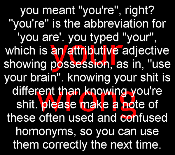 this message has been brought to you by the skywaybridge.com grammar police, pointing out petty but annoying grammatical errors in others, since 1998.