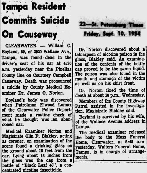 09.09.54: poison suicide William C. Boyland, 59 |